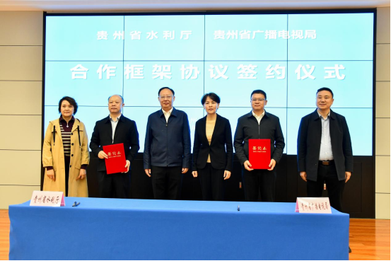 10月22日,贵州省广电局与省水利厅签署合作框架协议。省委宣传部副部长、省广电局党组书记、局长谢湘,省水利厅党组书记、厅长易耘出席签约仪式并致辞。省广电局党组成员、副局长范华,省水利厅党组成员、副厅长张渊代表双方签署《合作框架协议》。