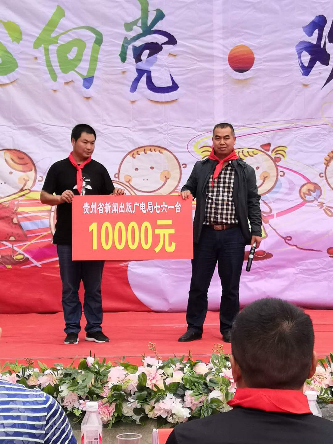 活动中,受贵州省广播电视局七六一台党支部书记、台长罗正明同志的委托,贵州省广播电视局驻粗石村第一书记孙云山代表贵州省广播电视局七六一台为粗石完小捐赠教育扶贫资金10000元。